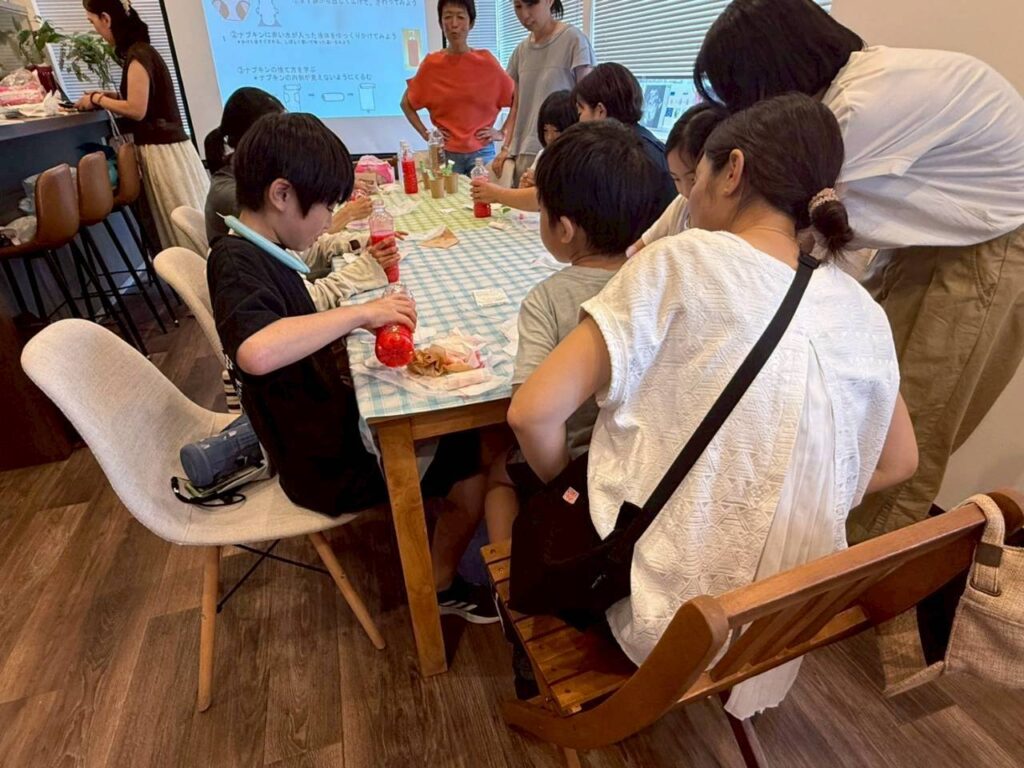 男の子も一緒にナプキン実験しながら楽しく学びました