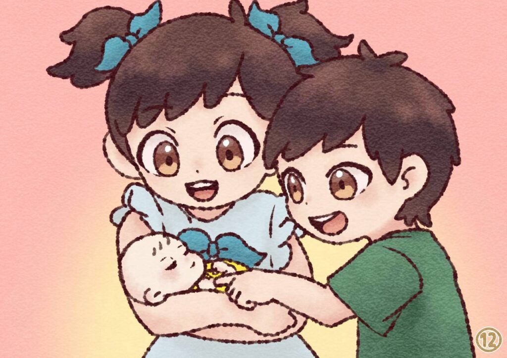 イラストは何度も修正かけて作成しました。ストーリーが決まってから、細かい設定や言い回しなど何度もみんなで話し合ってきました。一人一人が考えたくさんの意見が出ました。後、最後の「つたえたいこと」を作成します。ガイドブックも取り掛かっています。R7.12.07